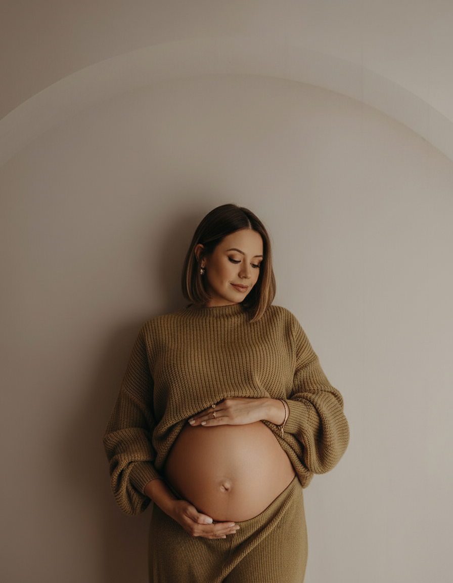 Grossesse, couple, famille et portrait en lumière naturelle.